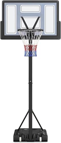ベースタンクに水または砂を入れることで安定性を確保し、2輪キャスター付きで簡単に移動できます。親子で楽しめるポータブルバスケットゴールとして、庭や駐車場での練習に最適です。