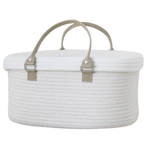 カゴのような見た目のバスケットタイプは、持ち運びやすいのが魅力。外ポケットがない分すっきりしており、ベビーカーフックに引っ掛けたり、ベビーカーの座面下の荷物入れに入れたりがスムーズにできます。外出用のおむつストッカーにおすすめ。