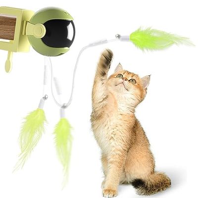 猫じゃらしは取り外しでき、手動でも持ちやすいニンジン型の持ち手が人気。本物の羽毛を使用しており、ふわっと軽やかな動きが猫の狩猟本能を刺激します。家事をしている間は一人遊びをさせて、家事が終わったら取り外して手動で遊ぶなど、シーンに合わせて使い分けが可能です。