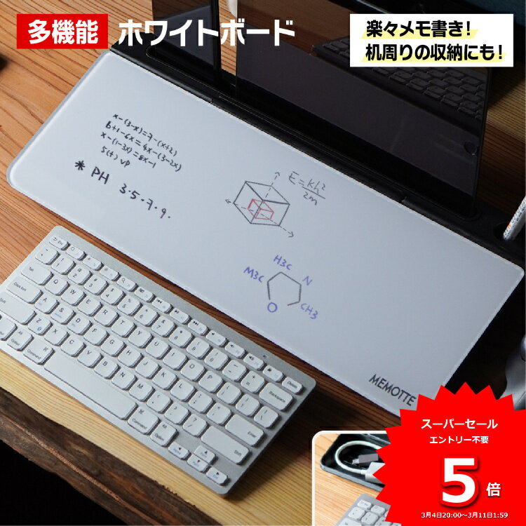 クレア 卓上ホワイトボード MEMOTTEAmazon¥4,999 楽天市場Yahoo!45×19×2~5.8cmガラス合成樹脂1.2kgキャスター・マグネットトレイカラーは白・黒の2色から選択可、ボードをあければ収納に、スマホ・タブレットホルダー付属