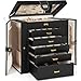 たっぷり収納できるサイズが魅力のAKOZLINのジュエリーボックス。引き出し式の多段構造と仕切り付きトレーで、ネックレスや指輪、時計などを美しく分類できます。特に仕切りのサイズや配置が工夫されていて、アクセサリー同士が絡まりにくい点もおすすめです。
