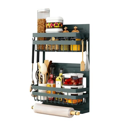 キッチンペーパーと一緒に周りの小物類を整理したい人には、収納ラックとホルダーが一体化したモデルがおすすめです。スパイス類やラップ・アルミホイル、レシピブックなどをひとまとめにしておくと、調理の効率が上がってキッチンもすっきり片付きます。