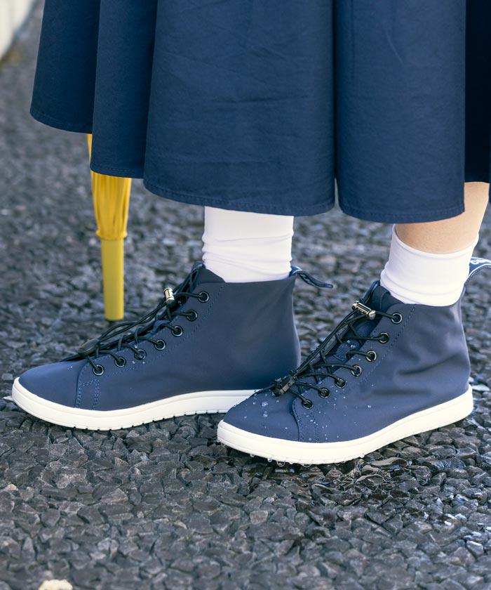 一方、足首まで覆われたハイカットのレディース防水スニーカーは、ローカットタイプに比べて防水できる範囲が広いのが特徴。また、フィット感や安定感があるので、雨で滑りやすい歩道を歩くときや、長時間のお出かけ時に向いています