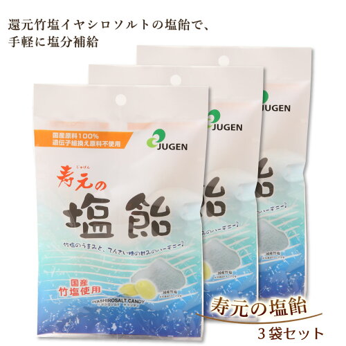 寿元の塩飴は、イヤシロソルト・てんさい糖・麦芽水あめのみでつくられています。材料はすべて国産品でまかない、竹塩に使う竹まで国産にこだわった徹底ぶりが特徴。飽きのこないてんさい糖の甘みと竹塩の旨みのシンプルさが、夏の熱中症対策にぴったりです。