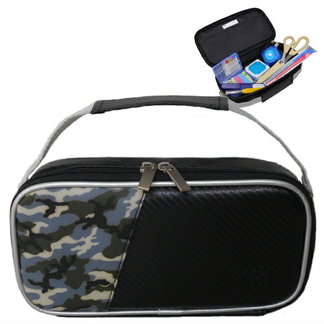 ライオンマンの型押しや迷彩柄がかっこいいデザインでも、小学生の心を掴みます。黒がベースの落ち着きのあるカラーリングのため、中学生でも持ちやすいです。持ち手が付いているので、通学時の持ち運びにも困りません◎